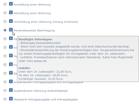Informieren Sie die Bürger über Voraussetzungen und Kosten zu jeder Terminart, bieten Sie weiterführende Informationen z.B. als PDF-Anhang in den Bestätigungs-Emails, binden Sie Anfahrtskizzen ein uvm.