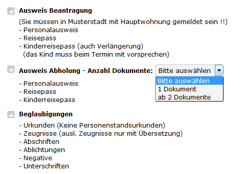 Mehrere Termine an verschiedenen Plätzen (erst Ausweis, dann Beglaubigung ...) können in einem Arbeitsgang gebucht werden.